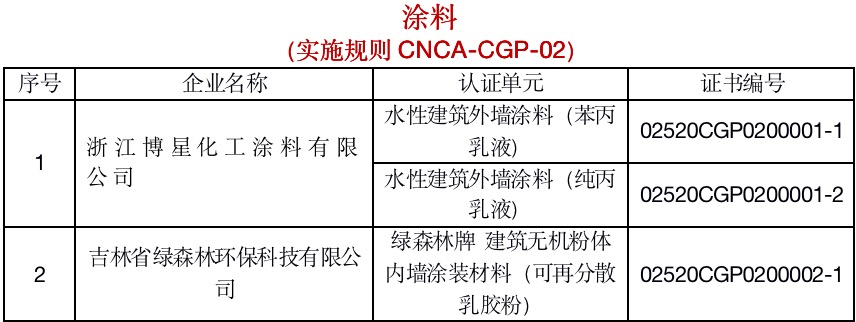 近日,國(guó)建認(rèn)證又向浙江博星化工涂料有限公司和吉林省綠森林環(huán)??萍加邢薰绢C發(fā)了國(guó)內(nèi)涂料行業(yè)首批中國(guó)綠色產(chǎn)品認(rèn)證證書(shū)3張。