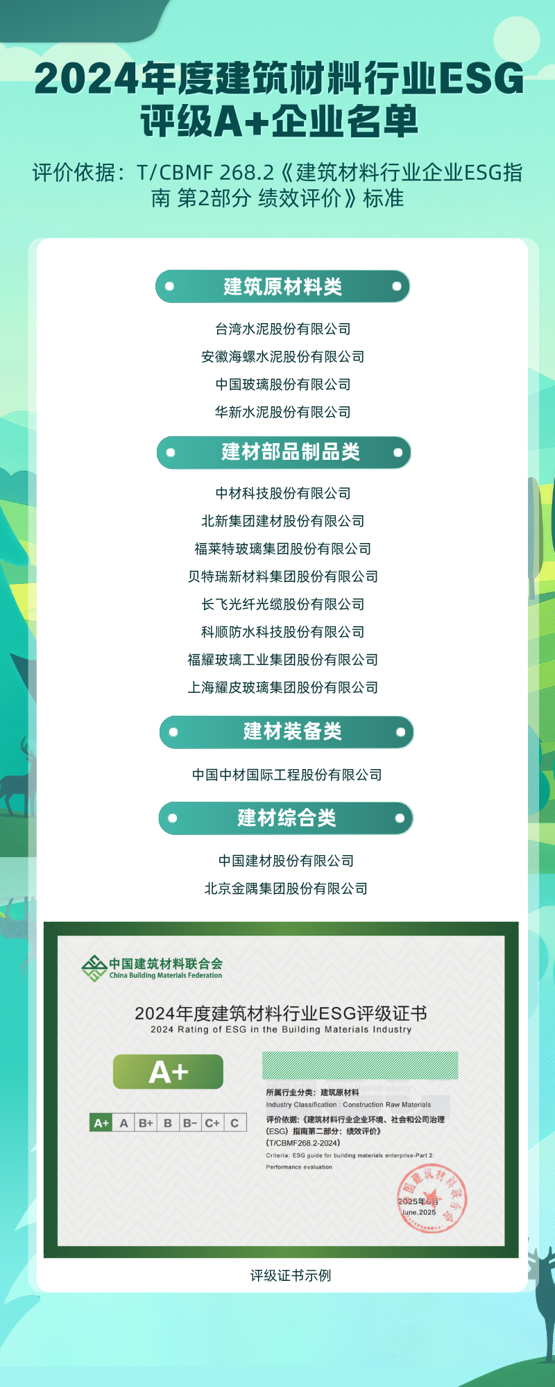2024年度建筑材料行業(yè)ESG評級A+企業(yè)名單正式發(fā)布