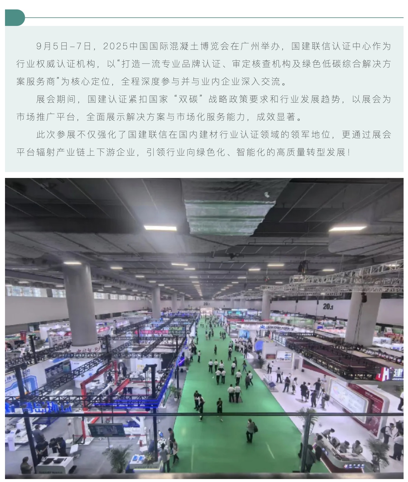 國(guó)建認(rèn)證參展2025中國(guó)國(guó)際混凝土博覽會(huì),以專業(yè)認(rèn)證工作推動(dòng)行業(yè)高質(zhì)量發(fā)展