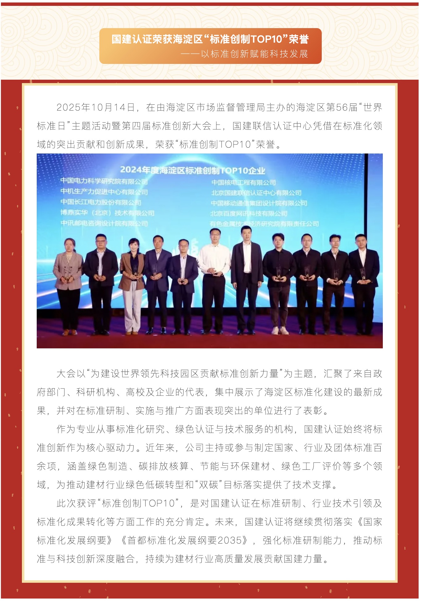 國建認證榮獲海淀區(qū)“標準創(chuàng)制TOP10”榮譽