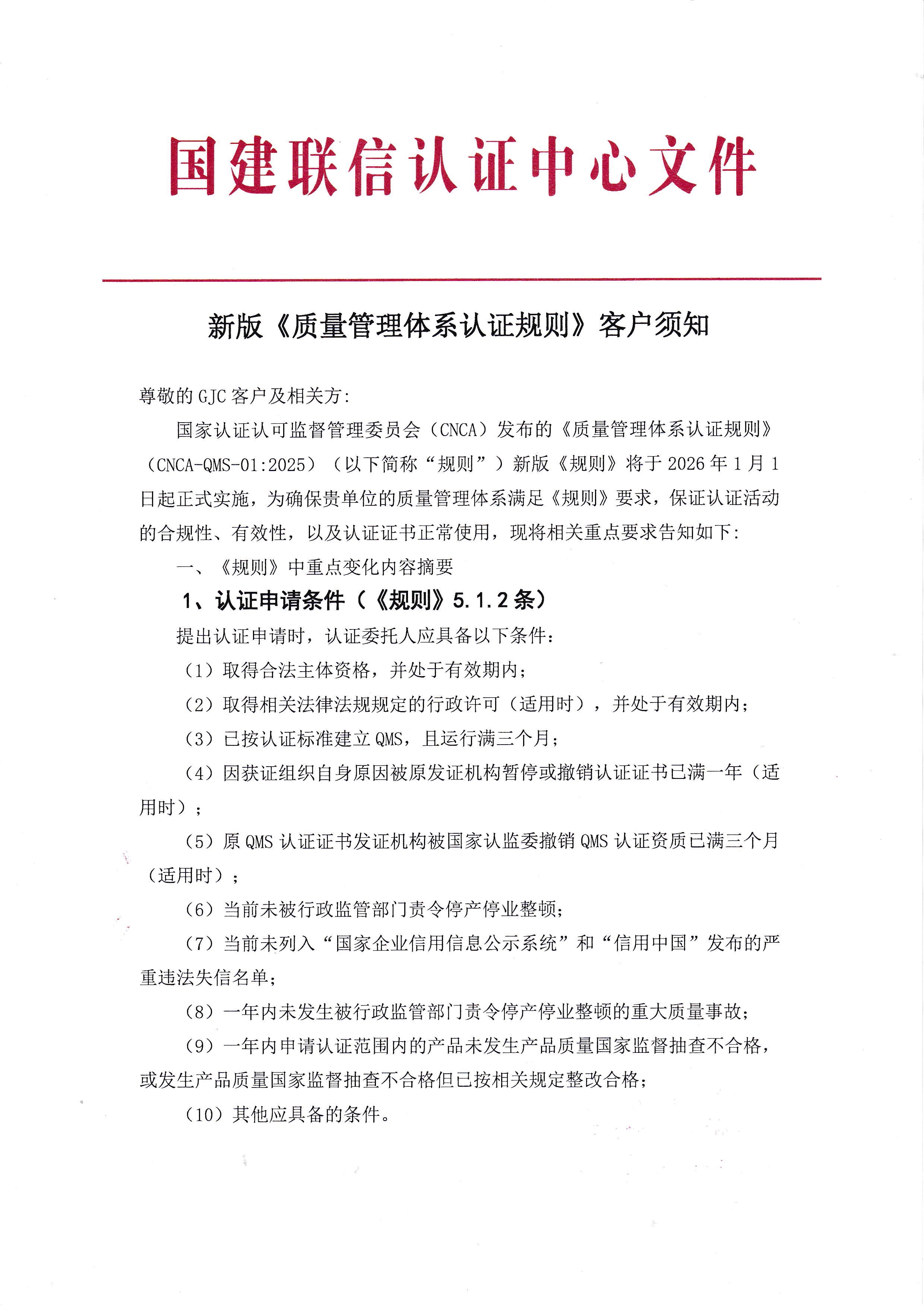 新版《質量管理體系認證規則》客戶須知