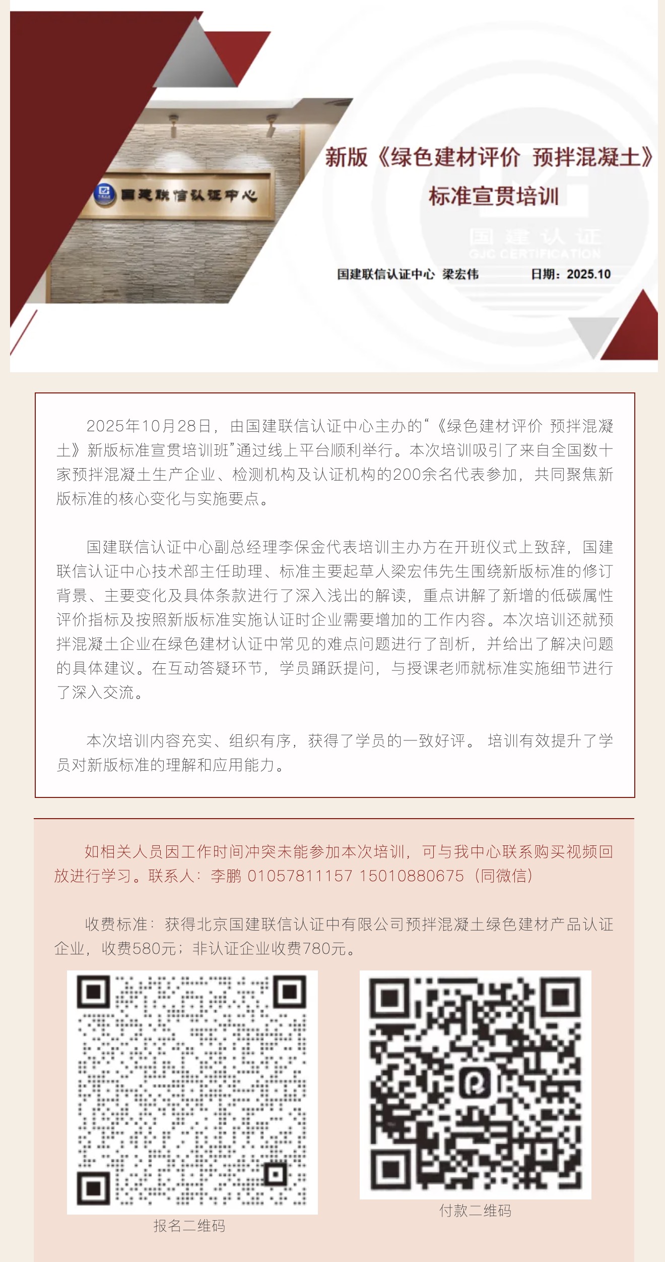 聚焦綠色標準,引領行業升級 | 《綠色建材評價 預拌混凝土》新版標準宣貫培訓班成功舉辦