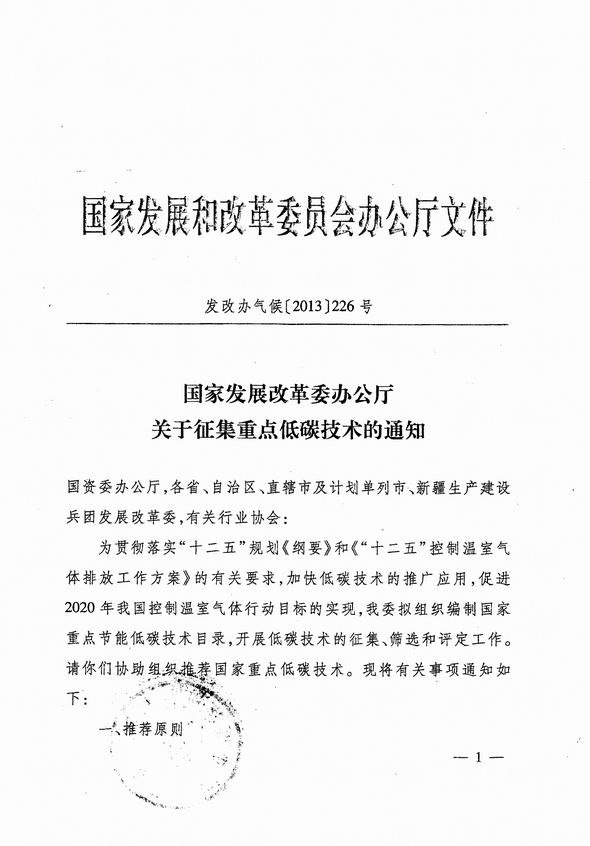 關(guān)于轉(zhuǎn)發(fā)《國(guó)家發(fā)展改革委辦公廳關(guān)于征集重點(diǎn)低碳技術(shù)的通知》的通知