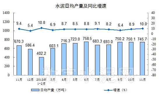 【數字水泥網訊】據國家統計局公布數據顯示,11月份全國水泥產量22372萬噸,同比增長10.0%,1-11月份水泥產量220088萬噸,同比增長9.2%。