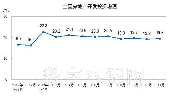 【房地產投資】2013年1-11月份,全國房地產開發投資77412億元,同比增長19.5%,增速比1-10月份提高0.3個百分點。其中,住宅投資53112億元,增長19.1%,增速提高0.2個百分點,占房地產開發投資的比重為68.6%。