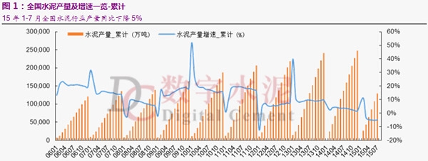 ◆2015年1-7月水泥產(chǎn)量同降5%