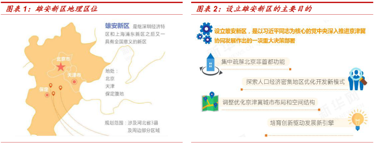 事件:中共中央國務院印發(fā)通知,決定設立河北雄安新區(qū),定位為深圳經濟特區(qū)和浦東新區(qū)后具有全國意義的新區(qū),是“千年大計,國家大事”。雄安新區(qū)的設立起步面積約為 100 平方公里,中期發(fā)展區(qū)域面積約為 200 平方公里,遠期控制區(qū)面積為 2000 平方公里。主要目的是集中疏解北京非首都功能,探索人口經濟密集地區(qū)優(yōu)化開發(fā)新模式,調整優(yōu)化京津冀城市布局和空間結構,培育創(chuàng)新驅動發(fā)展新引擎。