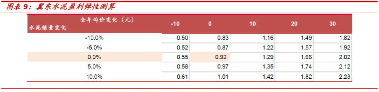 建立在前期中性預期上,我們對冀東水泥的盈利彈性測算如下。