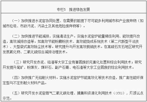 支持利用現(xiàn)有新型干法水泥窯協(xié)同處置生活垃圾、城市污泥、污染土壤和危險廢物等。開展赤泥、鉻渣等大宗工業(yè)有害固廢的無害化處置和綜合利用研究;提升開展尾礦、粉煤灰、煤矸石、副產(chǎn)石膏、礦渣、電石渣等大宗工業(yè)固廢的綜合利用的支持力度,在保證產(chǎn)品質(zhì)量和生態(tài)安全的前提下,在水泥產(chǎn)品中提高消納產(chǎn)業(yè)廢棄物能力,逐步增加可消納固廢的品種。