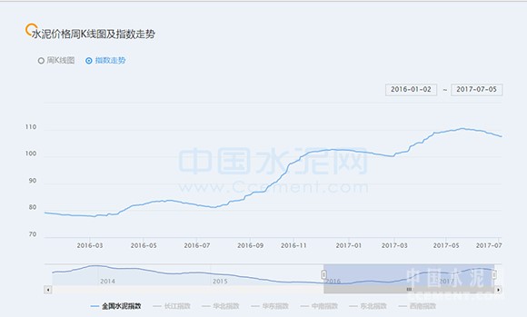 ![]() 2016年至今全國水泥價格指數