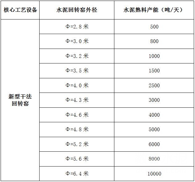 ![]() 備注:1、對(duì)于變徑窯,按其最粗窯徑核定產(chǎn)能。2、窯徑在上表中兩檔之間的,按插值法推算其產(chǎn)能。