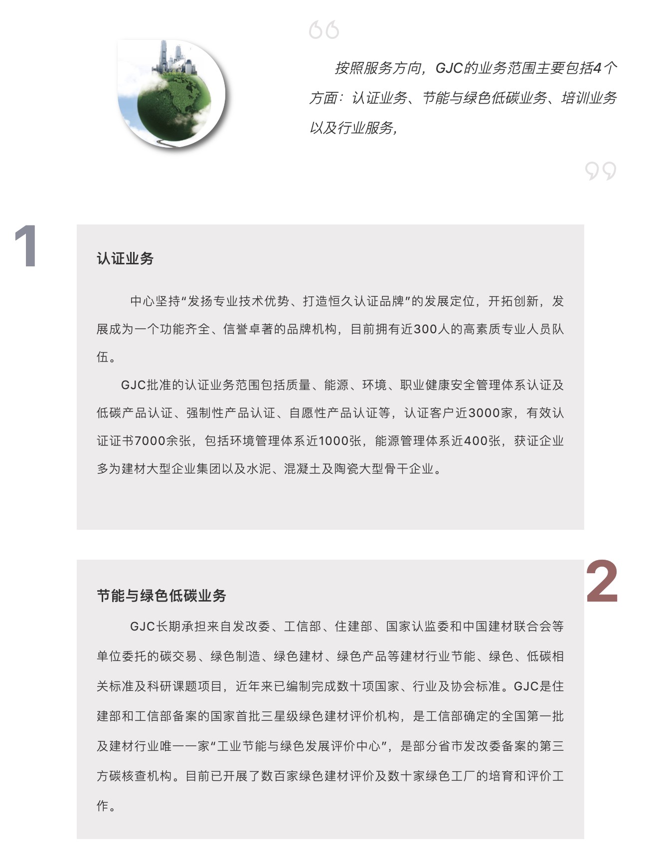 GJC系國家認監(jiān)委《能源管理體系水泥/玻璃/陶瓷企業(yè)認證要求》系列標準的起草者,2010年,經(jīng)國家認監(jiān)委授權(quán),GJC成為首批開展建材行業(yè)能源管理體系認證的機構(gòu),目前已有400余家知名建材企業(yè)通過本中心能源管理體系認證。