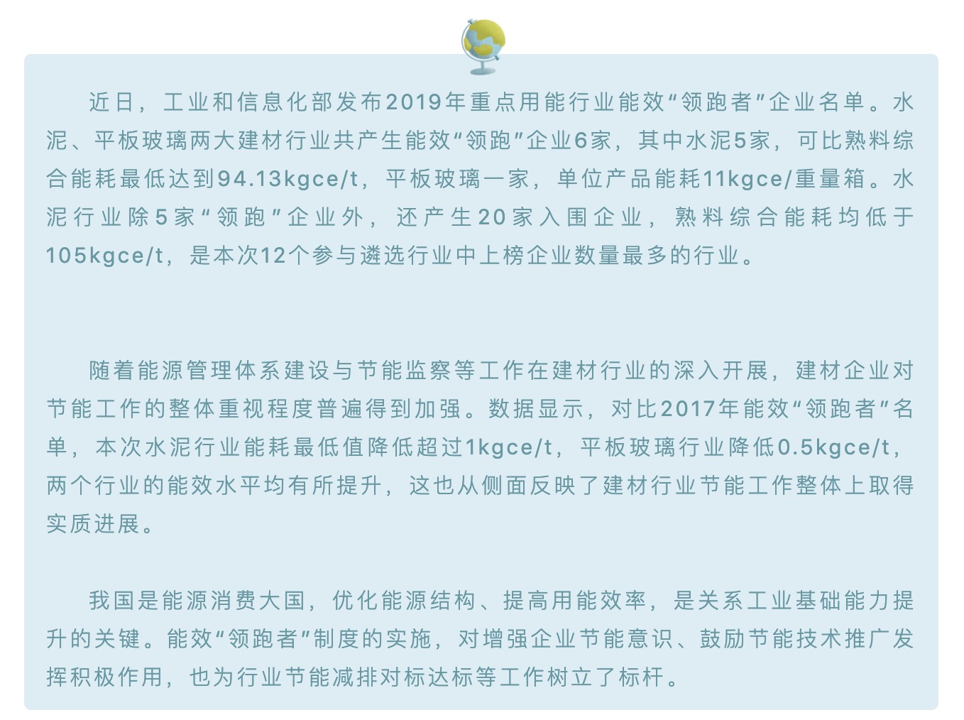 2019年能效“領跑者”發布,水泥、平板玻璃行業能效“領跑”取得新成績