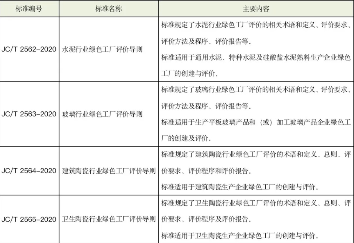 水泥、玻璃、建筑陶瓷及衛生陶瓷行業綠色工廠評價導則標準正式發布