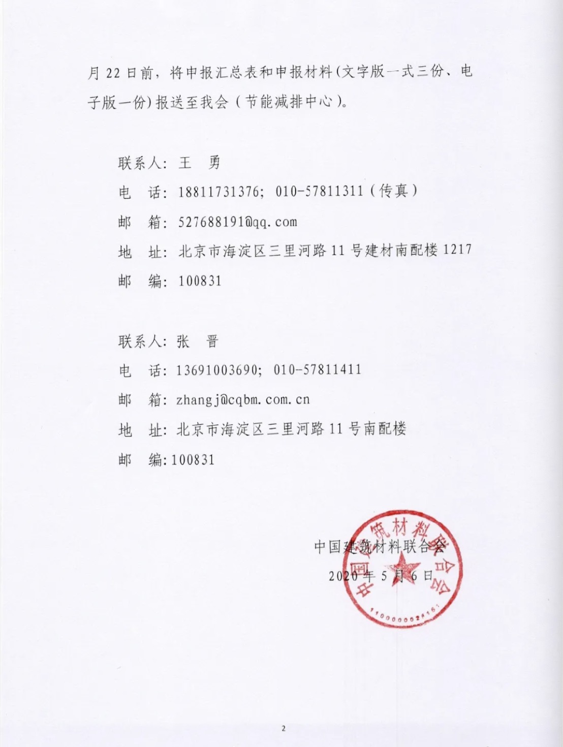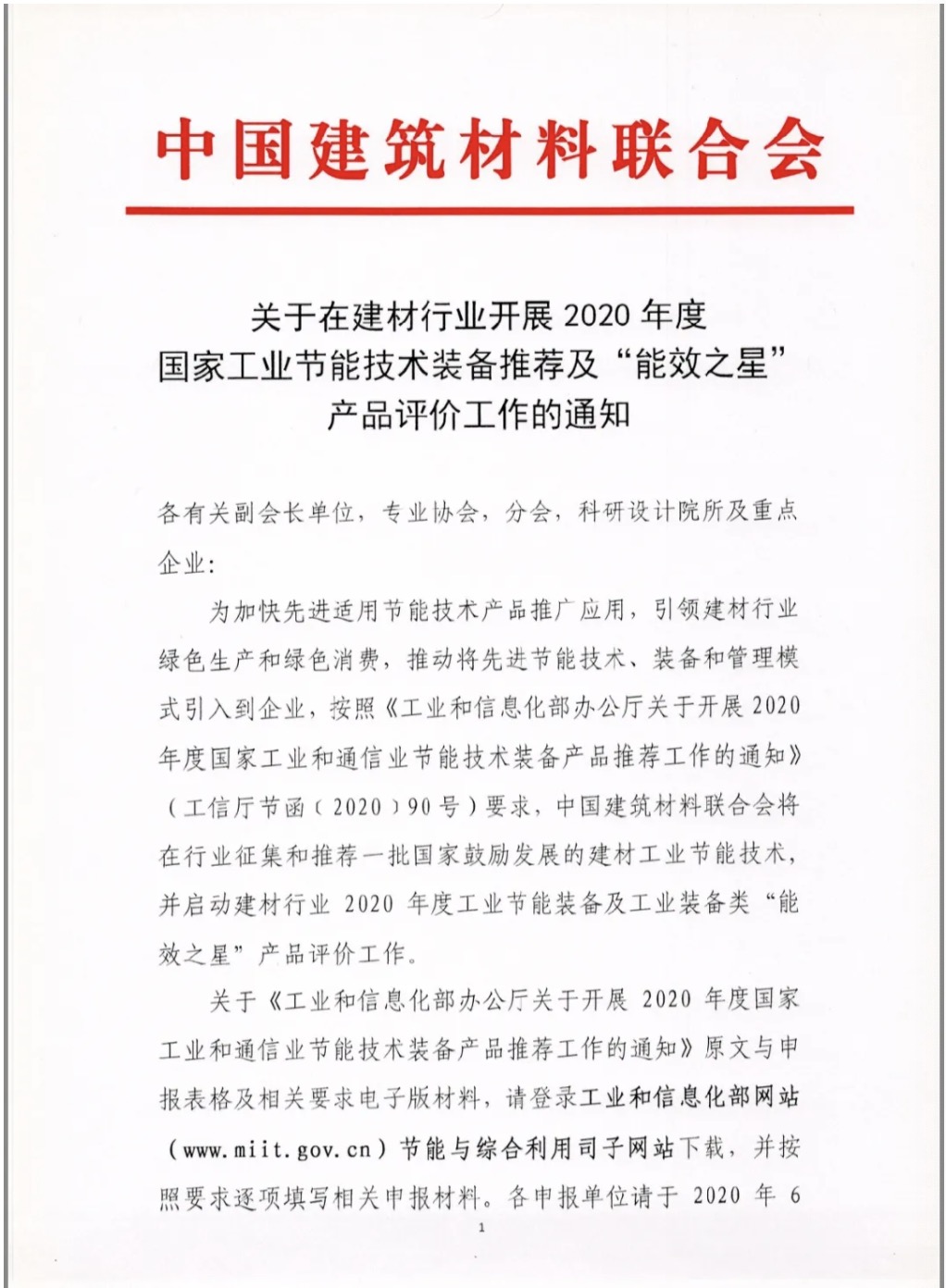 建材行業開展2020年度國家工業節能技術裝備推薦及“能效之星” 產品評價工作