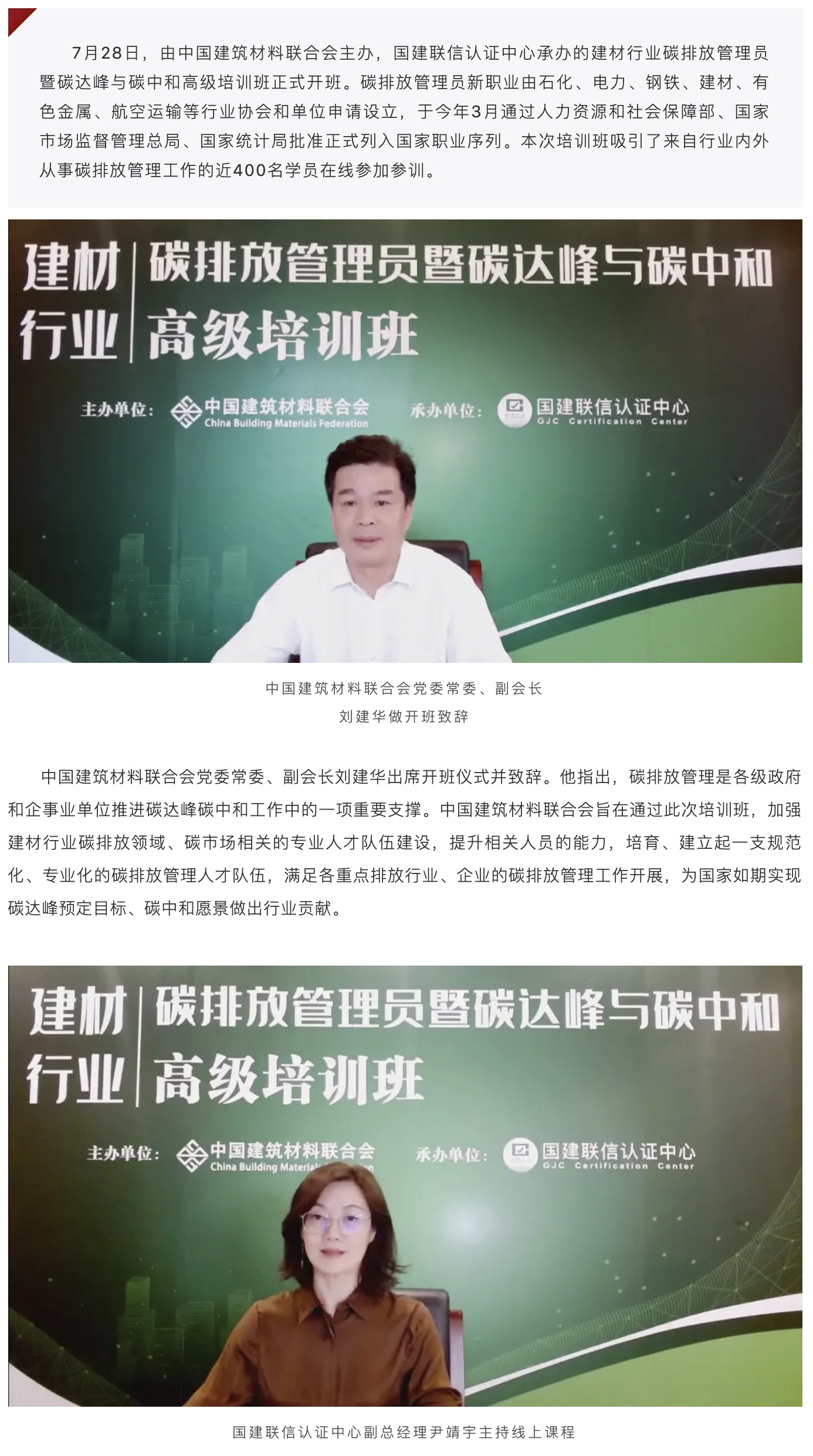建材行業(yè)碳排放管理員暨碳達(dá)峰與碳中和高級培訓(xùn)班正式開課