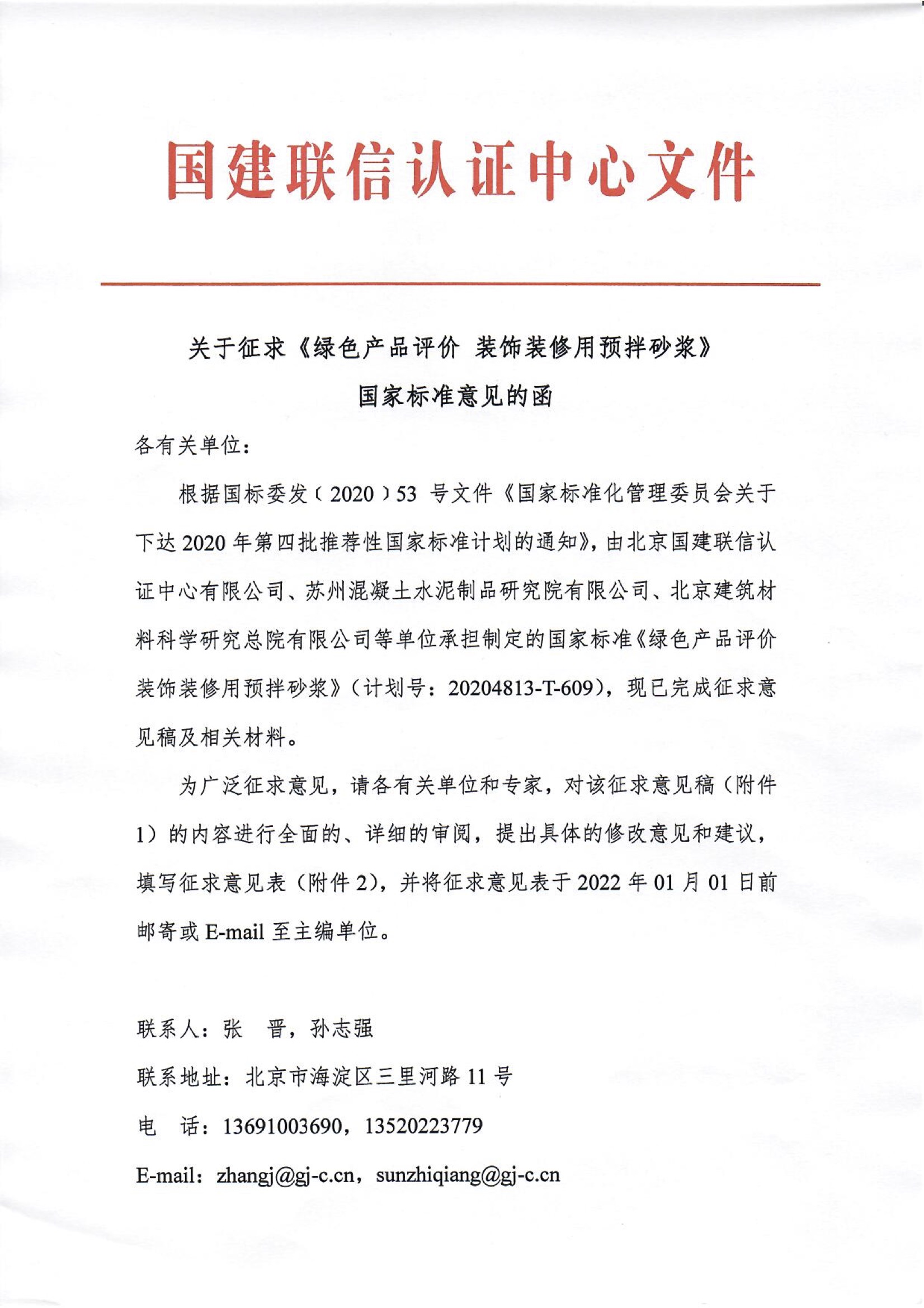 《綠色產品評價 裝飾裝修用預拌砂漿》國家標準 公開征求意見