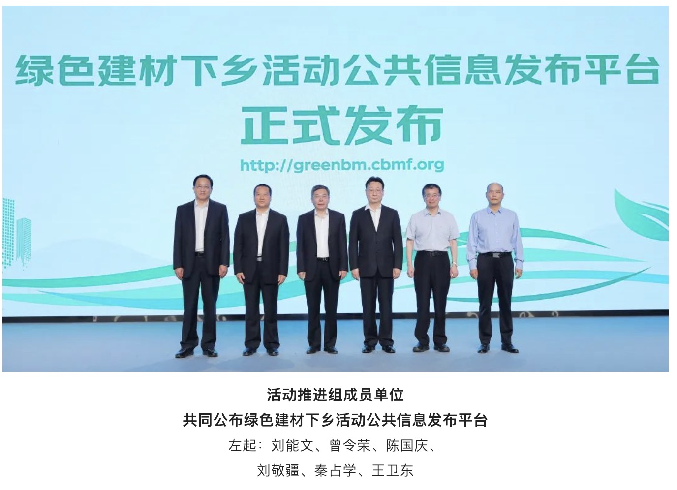 活動推進組成員單位領導陳國慶、劉敬疆、秦占學、劉能文、曾令榮、王衛東代表綠色建材下鄉活動推進組,共同發布“2022年綠色建材下鄉活動公共信息發布平臺”。該平臺作為綠色建材下鄉活動唯一的公共信息發布窗口,將發布并持續更新綠色建材下鄉活動產品清單及企業名錄、全國及各試點地區相關活動安排、綠色建材下鄉工作進展、企業參加下鄉活動申請、相關支持政策及解讀、綠色建材產品展示及典型應用案例等相關信息的公共信息服務及發布功能,以確保活動有序開展。