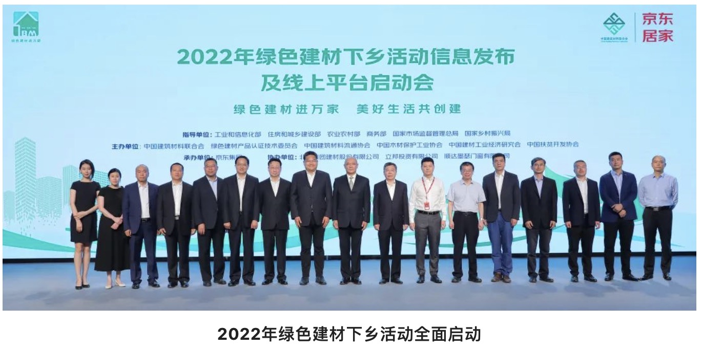 綠色建材下鄉活動開始全面啟動,6月6日,由工業和信息化部、住房和城鄉建設部、農業農村部、商務部、國家市場監督管理總局、國家鄉村振興局等六部門指導,中國建筑材料聯合會、綠色建材產品認證技術委員會、中國建筑材料流通協會、中國木材保護工業協會、中國建材工業經濟研究會、中國扶貧開發協會聯合主辦,京東集團承辦的“2022年綠色建材下鄉活動信息發布及線上平臺啟動會”舉行。會議對綠色建材下鄉活動下一步工作進行了總體安排,發布首批2022年綠色建材下鄉活動產品清單及企業名錄,正式啟動了綠色建材下鄉活動公共信息發布平臺及京東線上平臺,確定了綠色建材下鄉全國技術支持機構及合作伙伴。
