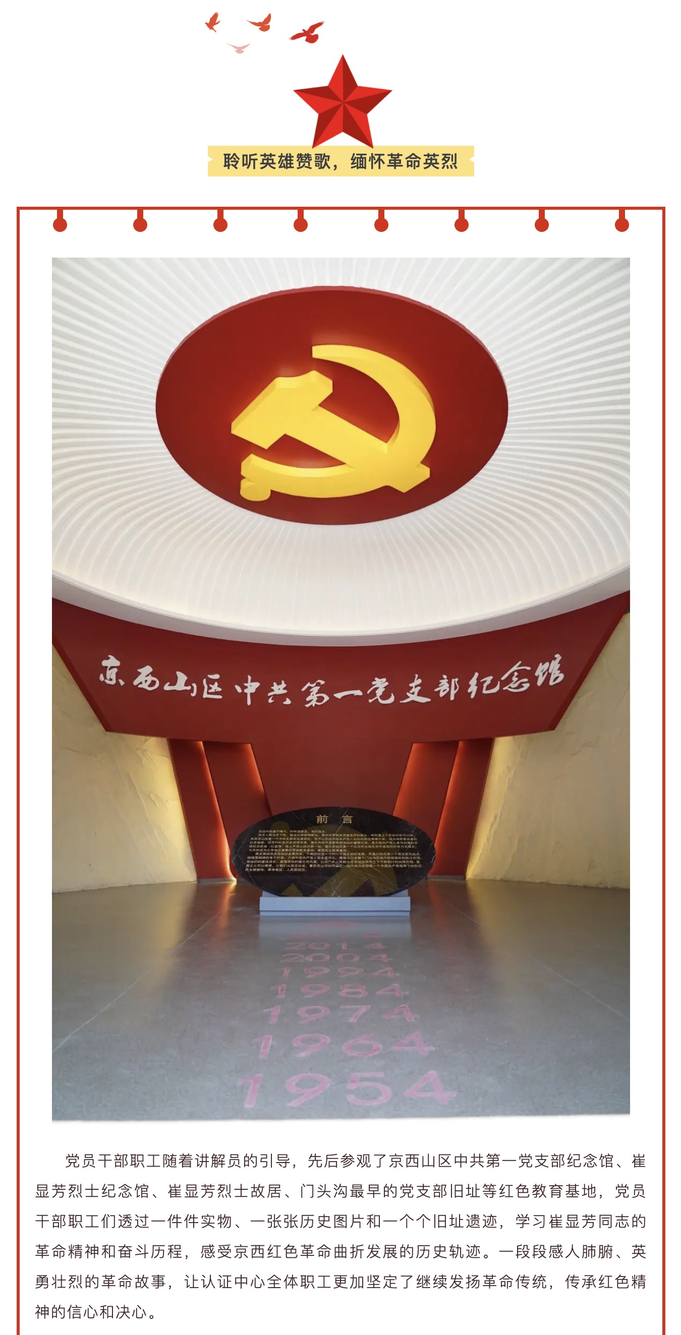 認證中心黨支部赴京西山區(qū)中共第一黨支部紀念館開展主題黨日活動