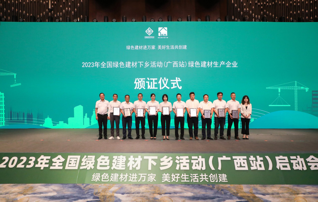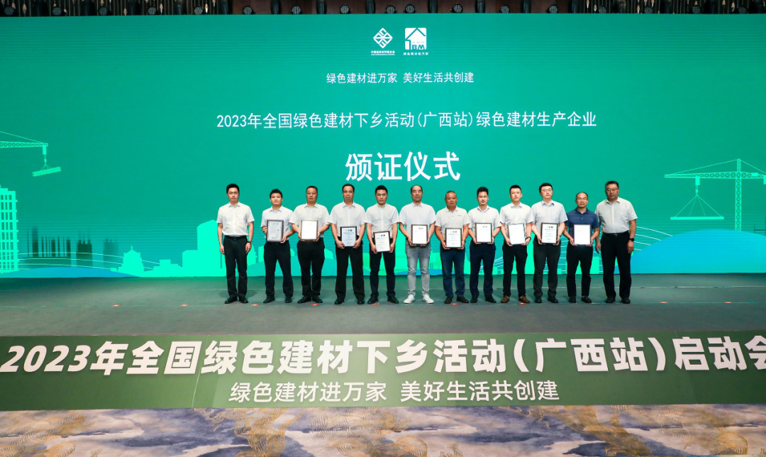 王永超介紹,近年來廣西持續推動工業領域綠色低碳發展,大力發展循環經濟,綠色建材產業發展成果顯著,誕生了一批龍頭企業,但綠色建筑產業發展及綠色建材產品推廣應用還有不充分、不平衡的問題,建材產品多樣化、品牌化、特色化建設有待加強。希望以本次活動為契機,擴大綠色建材產品認證、推廣和應用的深度和廣度,推動廣西綠色建材產業增品種、提品質、創品牌,實現綠色建材產業與鄉村振興、新型建筑業的聯動發展。