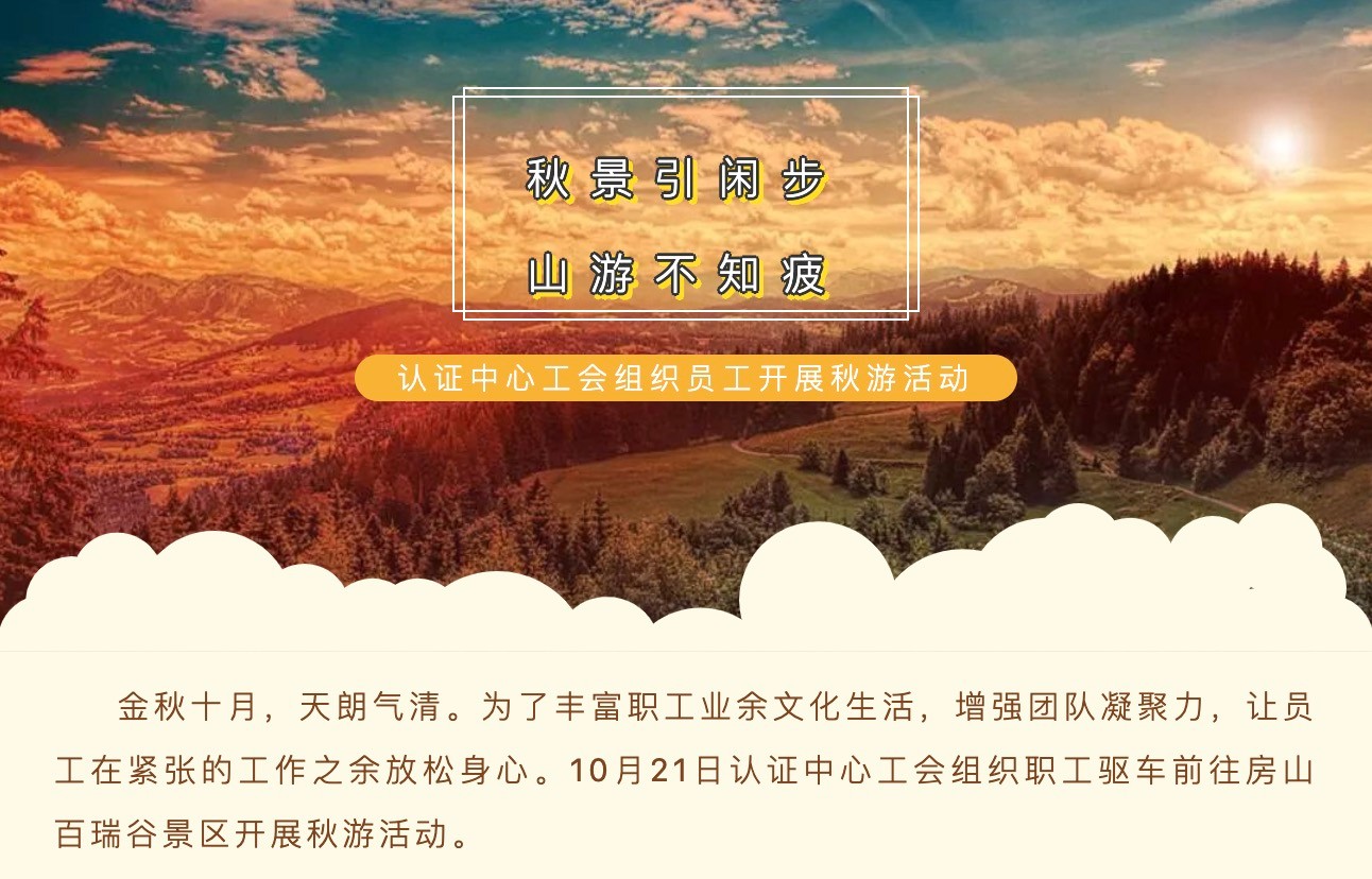 (1/9)![]() (2/9)房山百瑞谷景區![]() (3/9)秋日的百瑞谷層林盡染,疊翠流金。員工們在百瑞谷怡人的風光中親近自然,感受秋色。![]() (4/9)沐浴著和煦的陽光。大家有說有笑,興趣盎然,分享著工作之余大自然帶來的輕松與愜意。![]() (5/9)整個秋游活動井然有序、其樂融融,在大自然的懷抱中,大家彼此拉近了距離。進一步增強了團隊的凝聚力和向心力,體現出了中心團結活潑、健康和諧、積極向上的良好氛圍。![]() (6/9)![]() (7/9)![]() (8/9)![]() (9/9)活動結束后,大家紛紛表示此次秋游活動不僅愉悅了身心,增進了同事情誼,也為接下來即將面對的工作更積蓄了滿滿的正能量。![]() |